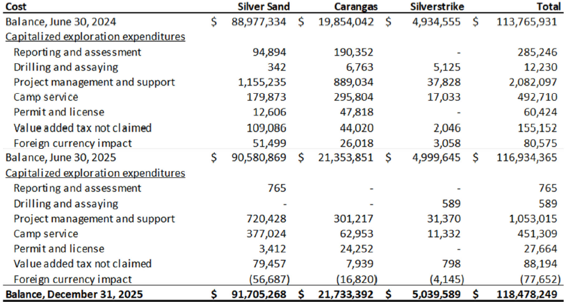 For the three and six months ended December 31, 2025, total expenditures of $0.03 million and $0.04 million, respectively (the three and six months ended December 31, 2024 – $0.01 million and $0.03 million, respectively) were capitalized under the project.
